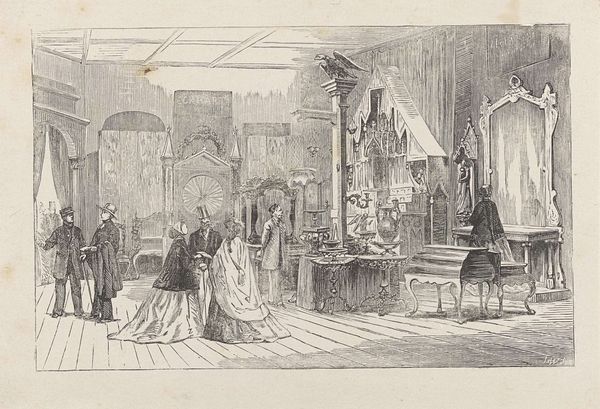 Joseph Nash captured this scene, "Medieval Court: The Great Exhibition of 1851", with watercolor and lithography. Observe the statues of saints and the Gothic architectural details—arches and spires that mimic the sacred spaces of Medieval Europe. The Medieval Court was meant to evoke a romanticized past. It is a curious reinterpretation, as it sits within the Crystal Palace, a building which was itself a symbol of modernity. The artist plays with this relationship between sacred and secular. The pointed arches, which once directed the faithful toward the heavens, here frame displays of manufactured goods. The red drapery evokes the pomp of royal ceremony, while the religious statues appear beside commercial artifacts. The visual echoes of religious and royal display are not accidental; the Victorians used these familiar visual languages to invest the industrial era with a sense of historical legitimacy. These cultural memories are not linear but cyclical, constantly resurfacing and evolving in new contexts.