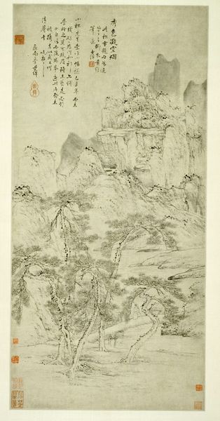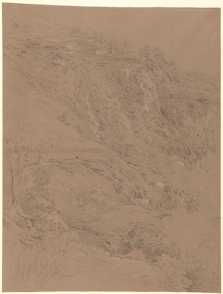 Curator: Looking at this drawing by Cornelis van Poelenburch, entitled "Interieur van een ruïne met figuren," made sometime between 1596 and 1667, displayed here at the Rijksmuseum... What springs to mind? Editor: Hmm, immediately I feel a sense of melancholy. The ruined interior suggests a glorious past, now decayed. The sepia tones deepen that nostalgic, slightly mournful mood. Curator: Precisely. The drawing, rendered in ink and charcoal on paper, masterfully uses chiaroscuro to amplify this effect. See how the dramatic light and shadow emphasize the contrast between what was and what is. Editor: I'm drawn to the composition—it's cleverly constructed. The ruin almost seems to frame the lone figure in the foreground. Curator: A tiny figure dwarfed by the enormity of time and decay! It's genre painting, but through Poelenburch's landscape style he makes a silent observation on the human condition. Editor: Are there figures on the top? It seems some tiny, maybe stone people, watching over the standing one? What would you make of their symbolism in this work? Curator: I think these added characters on top could be mythical creatures, maybe Roman Gods turned to stone watching the people pass by as ruins consume what they once stood for. Editor: Right, it reminds me that nature reclaims everything eventually. Curator: Absolutely, a potent symbol. The ruined interior reminds us of mortality and that constant negotiation of what lasts and what fades. The figure's contemplative pose underscores the universality of this understanding. Editor: Well, now I am leaving this artwork more melancholic than when I arrived. It leaves one to wonder, what will survive? Curator: A worthwhile question indeed. The image’s haunting beauty certainly lingers, provoking introspection long after you leave.
