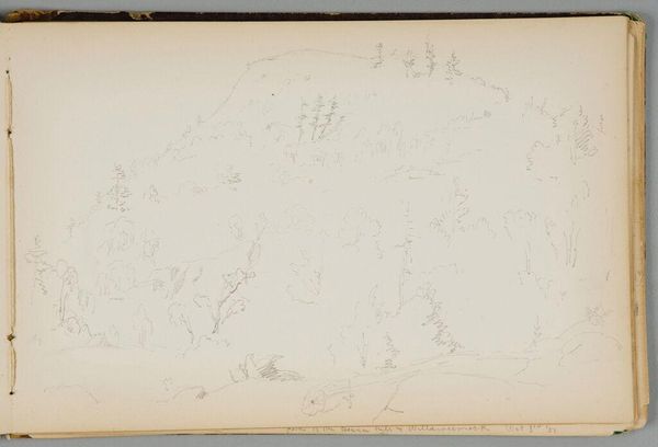 Curator: Sanford Robinson Gifford's "Small Landscape," circa 1860s, rendered delicately in graphite on paper, offers a fleeting glimpse into the artist's process. Editor: There's something very intimate about this sketch—almost like eavesdropping on the artist’s thoughts as they're taking shape. It’s incredibly subtle. Curator: Absolutely. Given Gifford's history, it’s conceivable that this represents an artist exploring his personal relationship with the concept of expansionist landscape. Editor: You're right—it's easy to forget the social implications of something as seemingly benign as landscape art, especially during this era. Curator: The choice of a simple graphite sketch makes the whole affair feel unpretentious, reducing the consumption of resources. Editor: It invites us to consider not just what he saw, but what he chose to foreground—and what he chose to leave out. Curator: Precisely, thinking about the materiality shifts our understanding of the creative decision making. Editor: I’ll certainly be thinking about the power dynamics embedded within landscape art moving forward.