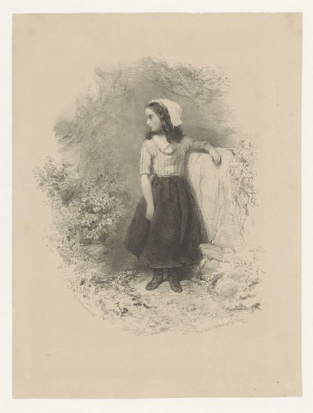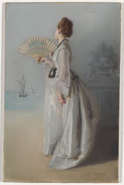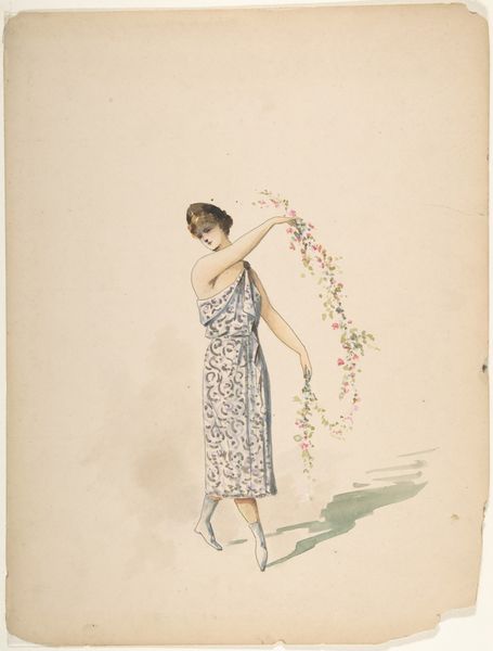 Editor: Here we have Alexandre-Louis Leloir's "Female Figure," created sometime between 1800 and 1900. It’s a watercolor and gouache piece currently housed at The Met. I'm struck by the idealized, almost ethereal quality of the woman. What do you see in this piece from a historical perspective? Curator: This watercolor speaks volumes about the shifting social attitudes towards women and representation in the 19th century. Leloir's figure, posed semi-nude within a landscape, aligns with the Romantic fascination with both the natural world and the female form. Consider the institutional framework: the rise of public museums and art academies simultaneously codified artistic standards and provided a space to debate these depictions of women. Editor: So, it’s more than just a pretty picture? Curator: Precisely. Who was allowed to view these images and under what conditions are critical questions. Nude studies were common in academic settings, but the commercial circulation of images like these raises questions about viewership and moral values. Does this challenge or reinforce societal norms surrounding female representation at the time, do you think? Editor: I guess it could do both. On one hand it presents an image of ideal beauty that reinforces societal expectations. On the other hand, it makes the female figure visible and public in new ways. I hadn't considered the gallery's role in shaping how this image would be perceived. Curator: Exactly. Considering art isn't just about the art itself, but also the entire network around it. It’s rewarding to think about art’s function as a site for historical reflection. Editor: It definitely gives me a lot to think about, thanks.