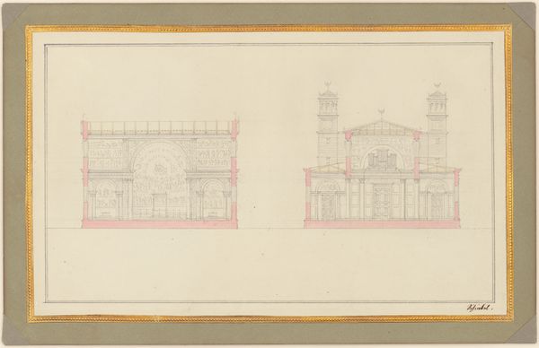 Curator: Here we have a fascinating “Architectural Drawing” from Nicolas François Barbier, dating roughly between 1780 and 1826. It’s currently held at the Metropolitan Museum of Art. Editor: Ah, a blueprint, literally. It's stark, you know? The precision feels…cold, but compelling, like staring at the bones of something magnificent before flesh and blood get in the way. Curator: Precisely. The work uses print, pencil and etching, manifesting key Neoclassical themes—especially form. Notice how the lines meticulously articulate the architectural structure and geometric shapes. This piece offers insight into the drafting processes during that era. The use of available materials like pencils was crucial in making these precise drawings. Editor: Those meticulously ruled lines… someone invested a serious amount of labor into this. It’s almost obsessive, the dedication required to capture all these angles and measurements. I wonder if the architect ever stepped back and thought, “What a soul-crushing job”. Curator: What strikes me is how this work invites reflection on the economic drivers of production and the status of architects in late 18th century society. Draftsmanship was a necessary and marketable skill within an emergent urban environment. Editor: True. And I’m just noticing—this isn't a pretty picture in the traditional sense, but the form creates a certain… harmony? A rhythm of right angles and sweeping curves, as austere as a Bach fugue. I can feel how I respond to it in my bones. Curator: Exactly, this resonates in Neoclassical style by returning to principles of order and reason, especially since drawing and printmaking facilitated its spread across workshops and patrons. The material and formal simplicity is, itself, a type of statement about value. Editor: I suppose, thinking about that economic exchange is vital because something had to give. Did artists compromise vision? Was creativity subservient to commerce? Questions, questions. All that pencil-pushing… Did Barbier realize they were sketching futures or signing away pieces of their soul? Curator: An interesting thought about that sacrifice in artistic integrity in favor of following current market values, and perhaps its relation to mental burdens. It adds to the appreciation, certainly. Editor: Definitely adds texture, even if just imagining things on my end! It makes me rethink that so called "precision"... Perhaps I would not call this as cold as a began thinking; but calculated, it breathes. Thank you, Nicolas! Curator: Indeed, it's the intersection of planning and construction that ultimately gives art its character, reminding us the crucial material foundation underlying imagination.