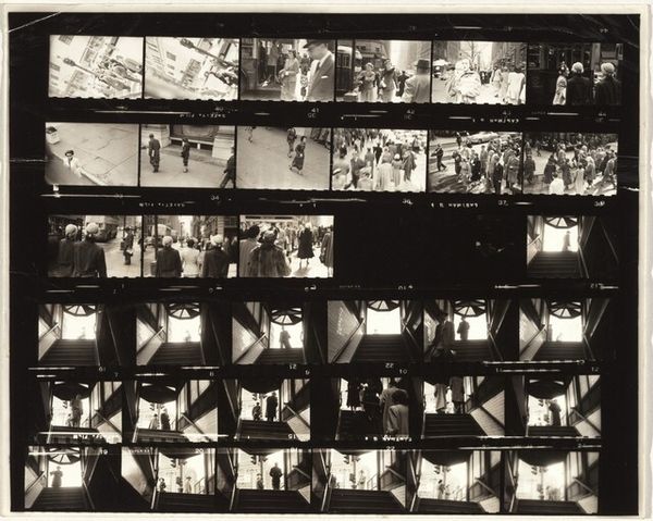 Editor: This is Robert Frank's "Sam Cooke for 'Glamour' no number," a contact print from 1964. Seeing all the frames laid out like this gives it such a raw, intimate feeling, almost like we're peering behind the scenes. What does this layout, and the imagery itself, tell you about the piece? Curator: Well, it gives insight into the construction of celebrity and the role of photography in that process. Frank's choice to present the contact sheet reveals the usually hidden labour and decisions behind crafting an image. We aren't just seeing Sam Cooke; we’re seeing how "Glamour" magazine aimed to represent him. Editor: So, it's about controlling the narrative, even? Curator: Precisely. The context of 1964 is crucial. Consider the Civil Rights Movement, the increasing visibility of Black artists like Cooke, and the power of media outlets like "Glamour" to shape public perception. Frank's work subtly questions that power, by revealing the editing and selection. How might different choices of images construct different narratives around Cooke? Editor: That’s fascinating, thinking about how easily a photo can be manipulated for a specific agenda. Each of these individual photos has the potential to tell an entirely different story depending on what's emphasized. Curator: And even Frank's choice to display the contact sheet challenges the clean, polished image we'd expect from "Glamour." It democratizes the photographic process, suggesting the constructed nature of fame. It gives us a peek behind the curtain. Editor: I see what you mean, by literally presenting all the outtakes too, Frank is opening the process up for debate. Curator: Exactly! Which shifts the control. It's not just about Sam Cooke anymore; it's about the entire industry and its relationship to its subjects and audiences. Editor: Wow, I definitely didn't see all of that initially. Thanks, that’s given me a completely new perspective! Curator: Indeed, it is an interesting dialogue. I hadn't previously looked at how each selected image, presented or dismissed, had its role within society.