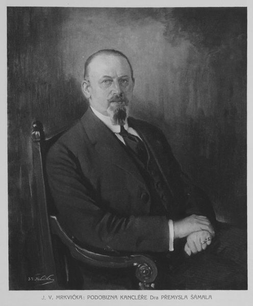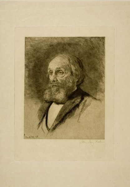Editor: Here we have Henry Wolf's self-titled work, "Henry Wolf." Though undated, Wolf lived from 1852 to 1916. It's currently at the Harvard Art Museums. It's monochrome and presents a formal portrait; what do you notice about the composition of this portrait? Curator: Observe the artist's masterful use of light and shadow, a chiaroscuro effect, to sculpt the figure. Note how the subtle gradations create depth, giving a palpable texture to the subject's face and clothing. How does this restrained palette affect your perception? Editor: I think it gives the portrait a timeless quality, almost like a classical sculpture. Curator: Precisely. The artist’s control over tonal values invites us to contemplate the subject's inner life through the formal elements of the work. Consider the lines of the face in relation to the overall texture of the artwork. Editor: I see it now, there's a real intensity captured, not just a likeness. I appreciate how the formal approach allows for such a nuanced understanding. Curator: Indeed, it reveals how much can be communicated through careful attention to form and technique alone.