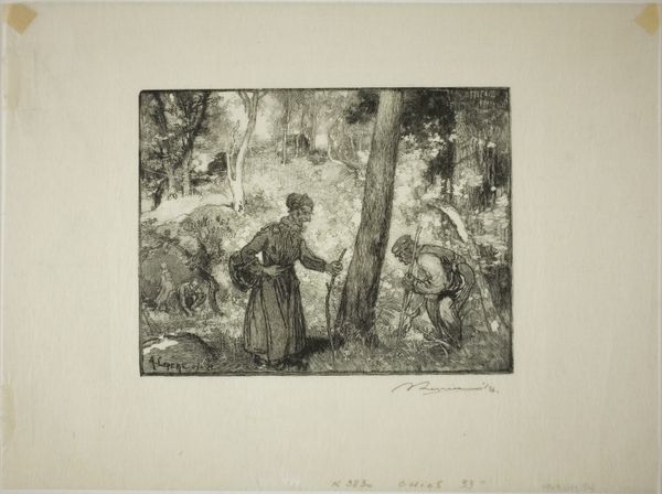 Editor: This is Alexandre Calame's "Landscape Number 6". It feels so atmospheric. I'm drawn to the light filtering through the trees. What do you see in this piece? Curator: It whispers of the sublime, doesn't it? Calame, deeply moved by nature, conjures a space where sunlight dances with shadow. It reminds me of poetry, a visual sonnet celebrating the grandeur of the natural world. Do you feel that stillness? Editor: Absolutely, I see what you mean! It's more than just a picture of trees. It's like he's captured a feeling. Curator: Precisely! Calame wasn't just painting a landscape; he was painting a soulscape. It's a gentle nudge to find our own poetry within the rustling leaves. Editor: I'll definitely look at nature differently now. Thanks! Curator: The pleasure's all mine. It's remarkable how art can sharpen our senses.