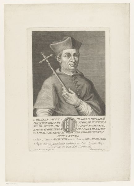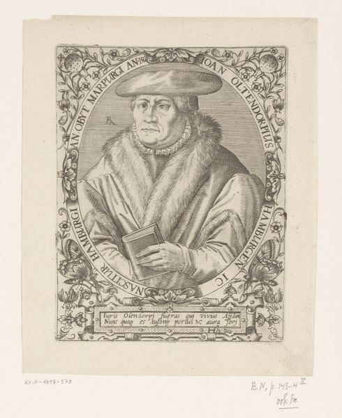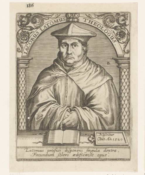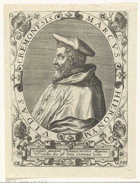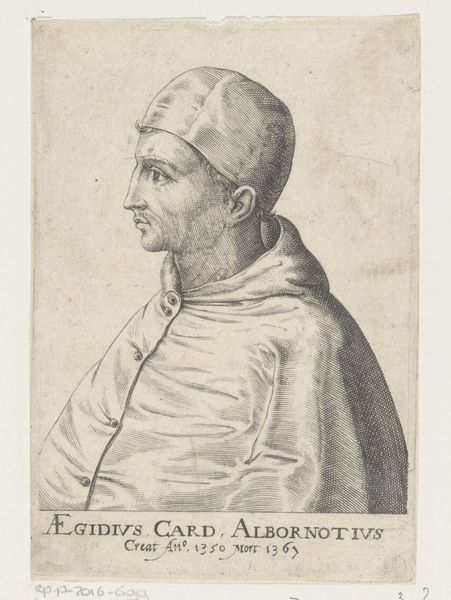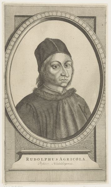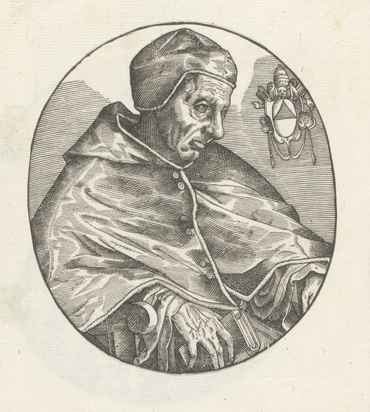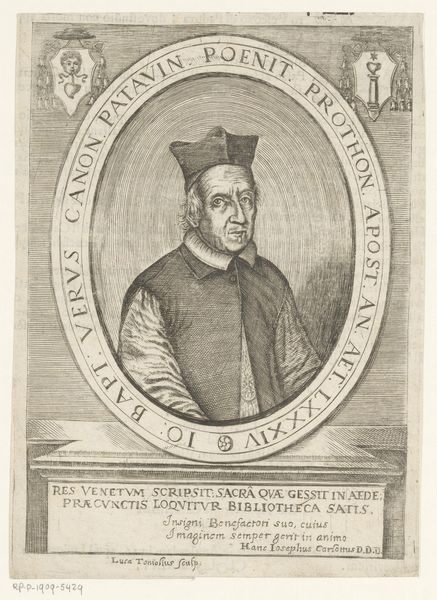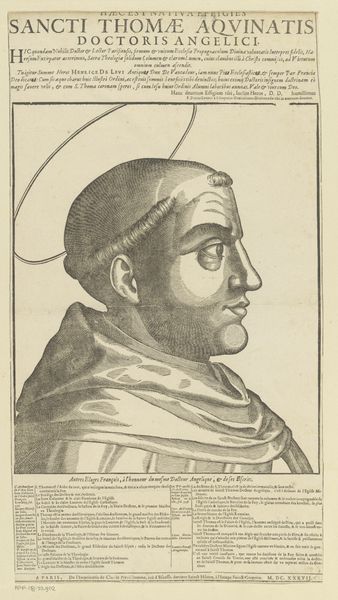 Nicolas de Larmessin I created this portrait of Franciscus Sonnius, using etching techniques. The image is immediately striking for its composition. An oval frame neatly contains the bust of Sonnius, a formal device that directs our gaze intensely towards the subject. De Larmessin uses a play of textures achieved through etching to define the planes of Sonnius' face and vestments. Note the subtle cross-hatching that models form and creates a range of tonal values. The rigorous lines, carefully layered, give shape not just to the figure, but also to the perception of character. This approach embodies a certain intellectual rigor, mirroring the subject’s own ecclesiastical standing. De Larmessin is not merely depicting a likeness, but constructing an image steeped in meaning and representative of broader cultural values. The precise details serve to create a sense of order, reflecting the prevailing attitudes toward representation and the structuring of knowledge during this period. The portrait serves as a historical document as well as an aesthetic object.