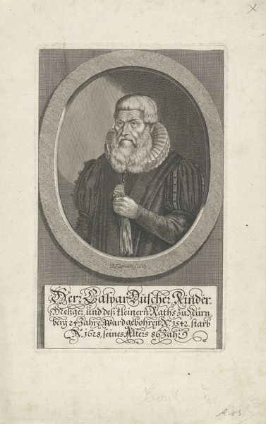 Editor: So, this is *Apostel Matteüs*, or Apostle Matthew, by Christoffel van Sichem II, made before 1646. It’s an engraving currently held at the Rijksmuseum. What strikes me most is how the cross and book are positioned, drawing attention to both religious tools within a single frame. What do you see in this piece? Curator: Well, viewed through a historical lens, prints like this were crucial in disseminating religious and cultural values to a broad audience. This image provided a visual representation of a biblical figure, Matthew, associating him with literacy, suggested by the book, and martyrdom, suggested by the cross. The combination reflects a conscious effort to shape public perception. Notice, however, that his apparent holiness is juxtaposed with what some might consider primitive rendering. Editor: I see what you mean. The linework does seem almost… folk-art-ish. Was that common? Curator: It reflects a tension between artistic ambition and the pragmatic needs of the time. Prints had to be relatively quick to produce and inexpensive to distribute, especially those intended for less wealthy segments of society. But even more critical is to acknowledge the distribution and purpose; Who made these prints? Who distributed these, where and for what audience and what impact did this portrait have within that sphere? Consider how this image would be different had it been oil on canvas, displayed in a cathedral, viewed only by the elite. Editor: So, its artistic value is intertwined with its social function and reach. Curator: Precisely. The seemingly simplistic rendering becomes part of a wider cultural and economic exchange. Do you feel you understand the power and responsibility imbued by art as propaganda, art for distribution within certain societies and subcultures? Editor: Definitely! It makes me reconsider how we value art today. Thanks! Curator: My pleasure! I, too, realize that such accessible, reproducible artworks reached further than individual art in the elite's halls.