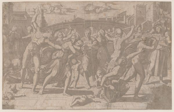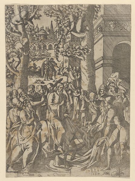 This anonymous engraving shows us a scene of labor and judgment, rendered in ink on paper. The image invites us to consider the burdens we carry, both literally and figuratively, as we navigate the complexities of social structures. Here, people from all walks of life, rich and poor, carry sacks on their backs toward a central mill, a metaphor for the inescapable grind of daily life. The image is deeply rooted in the social and economic anxieties of its time, a period marked by stark class divisions and widespread social unrest. Positioned above the mill are allegorical figures such as Justice, and Death with his bow and arrow, who preside over this theater of human toil. The emotional weight of the artwork lies in its depiction of human persistence in the face of relentless pressure, as each individual contributes to the collective effort. The artwork prompts us to reflect on the systems that govern our lives and the burdens we bear in a society that often seems indifferent to individual struggles.