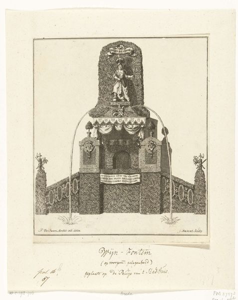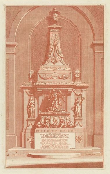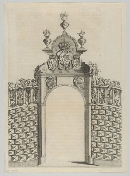 Editor: This is "Illuminatie van het huis van mr. Straalman te Amsterdam, 1788," a print by Barent de Bakker, housed at the Rijksmuseum. It seems to depict a brightly illuminated house. What strikes me is the almost theatrical staging of the display. How do you interpret this work? Curator: This image pulses with symbolism and collective emotion. Note how the illumination transforms a private residence into a public spectacle, reflecting the cultural weight placed on civic duty and familial celebration. What do you notice about the emblems adorning the facade? Editor: Well, I see crests, what look like allegorical figures, and even a cloud or sun-like image at the top. They almost feel like religious icons placed in a public, civic setting. Curator: Precisely! These aren't arbitrary decorations, they're signifiers. Consider the strategic placement of those crests – echoes of power, lineage, and the aspirations of a burgeoning merchant class, all interwoven to project an image of stability and prosperity. The cloud-like image might symbolize divine favor or enlightenment ideals, common motifs during the Dutch Golden Age, suggesting a blend of religious belief and rational thought. Editor: So, the illumination isn't just festive; it's a careful performance, communicating a message about Mr. Straalman and his place in Amsterdam society? Curator: Exactly. These public displays weren't merely about celebration; they were powerful instruments in shaping public perception and solidifying social standing, visually reinforcing a particular narrative of success and virtue, resonating with deeply ingrained cultural expectations and anxieties. What cultural memories does this image spark for you? Editor: I never considered how much could be read into something like this. It makes you think about how we, even today, use similar displays to convey status and belonging. I will never look at celebratory lights the same way! Curator: Indeed, visual symbols have immense cultural and psychological significance. We can still find traces of collective identities reflected through art and material culture throughout the course of history.