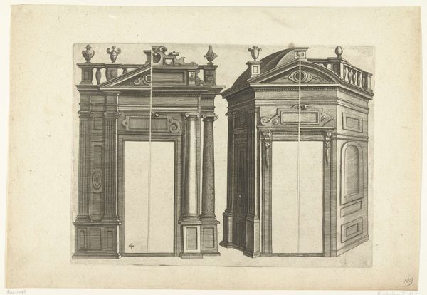 Curator: What strikes me first is this feeling of controlled exuberance—it's like a baroque dream tamed by neoclassical sensibilities. Editor: I see exactly what you mean. We’re looking at "Project for a Domed Building with Colonnaded Façade," a drawing—or more accurately an etching and print—dating back to somewhere between 1700 and 1800. Currently it lives at the Metropolitan Museum of Art. The piece gives the bones of a structure, doesn’t it? The facade laid bare. Curator: Yes, laid bare! Almost surgically so. And despite the anonymity of the artist, one feels their presence keenly in the detailed execution. This domed building has this kind of, hushed intensity. Look how each line seems considered, placed just so. There is some of that baroque sensibility with the lines, yes, but the overall picture speaks about something other than splendor and dynamism; like a love letter to some grand, never realized idea, wouldn't you agree? Editor: I agree. I am always drawn to domes as symbols of cosmic order, that striving to echo the heavens. This particular dome, though, feels very grounded in reality, almost attainable, and not as much connected with heavens. Look at the stark cross-section. It evokes a sense of possibility but with a twinge of regret. It feels like a study in the architectural aspiration—that the perfect building is in one’s mind, in our memories perhaps. And this one sits patiently in ink as an anonymous meditation. Curator: It’s like looking into the soul of a building before it exists, isn’t it? Editor: Precisely. This almost clinical rendering strips away all the fluff, and it’s beautiful. Curator: Absolutely! An ode to what *could* be. And it resonates even more deeply, knowing that this building never came to be… This beautiful monument that lived only as lines in a drawing. Editor: So true. It’s become a symbol of those dreams, sketched out but unrealized, in stone or in ourselves.
