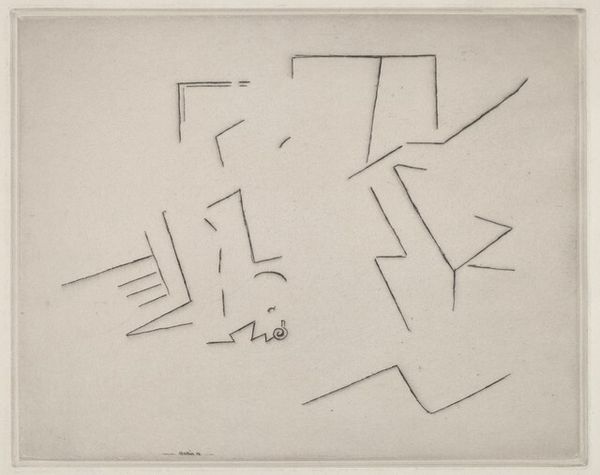 Curator: This is a “Sketch” by Stuart Davis. Note the dimensions, approximately 20 by 12.7 centimeters. Editor: It’s so simple. I am struck by the economy of line, almost playful in its abstraction. Curator: Davis was deeply engaged with the urban environment and the development of American modernism. I can see echoes of Cubist fragmentation here, but reduced to essential graphic elements. Editor: Yes, and these shapes aren't quite recognizable. Are they architectural forms, or something else entirely? The X, the wavy line…it all feels very symbolic. Curator: Perhaps Davis is exploring the relationship between representation and pure form. He used this kind of study to prepare for larger paintings. Editor: Looking at the relationships between shapes is thought-provoking. It's a fascinating glimpse into the artist's process. Curator: Indeed, a fascinating visual reduction.