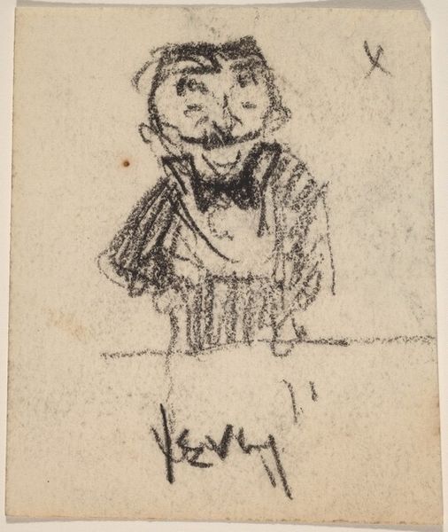 Gerrit Willem Dijsselhof created this caricature of two Amsterdam characters with graphite. The stark contrast between the dark, dense lines forming the figures and the bare paper amplifies the expressiveness of the sketch, drawing our attention to the exaggerated features of the subjects. Dijsselhof's emphasis on line and form over realistic representation introduces us to structuralist ideas. The drawing uses simplified shapes to convey the essence of its subjects. Note how lines are not merely outlines but carriers of expression, defining the mood and character of each figure. The use of stark black and white flattens the image, reducing depth and emphasizing the artificiality of the representation. By isolating and exaggerating certain physical traits, Dijsselhof invites us to question how we construct identity and meaning through visual signs. This piece, with its raw execution and focus on essential forms, remains a compelling example of how structural elements can communicate complex cultural insights. The drawing's caricature form does not simply mimic reality but actively interprets and reshapes it.
