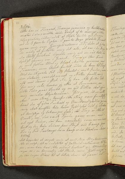 Editor: This is Johan Thomas Lundbye’s “Diary. Page 46” from 1843, ink on paper. It seems so personal and introspective, a glimpse into the artist's private thoughts. What do you see in this piece beyond just diary entries? Curator: This work invites us to consider the journal as a symbolic space. Words themselves become icons. Look at the density of the script, how the lines form patterns. Doesn't it remind you of textiles, like woven stories or perhaps tapestries hung in a domestic sphere? Editor: That’s interesting! I hadn’t thought of it like that. I was more focused on the literal meaning of the words and their intimate nature. Curator: Consider the cultural memory embedded in handwriting. The act of committing thoughts to paper, especially in such a deliberate script, reflects a different kind of engagement than, say, a typed document today. How does this hand-written quality alter our sense of "truth"? Editor: So you're suggesting that the very act of writing by hand imbues the words with a greater sense of authenticity? Like a physical manifestation of the artist’s inner world? Curator: Precisely. The imperfections, the flourishes, all become part of the message. And remember, during the Romantic era, the personal and the emotional were highly valued, becoming symbols of individual experience. It's the cultural weight of intimacy as performance. Do you see continuity between these entries and a more contemporary forum like online blogging or live journaling? Editor: Now that you mention it, it feels like an early ancestor to those forms, like a bridge to another era. Curator: Exactly. These diaries can reflect deep personal narrative while they also carry broader, shared sentiments. It also gives voice and shape to experiences, not merely for recounting but as an action in self-authorship. Editor: This conversation made me consider this work in such a different light. I appreciate how you helped to reveal the work’s symbolism and relationship to history and contemporary expressions.