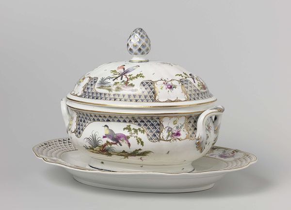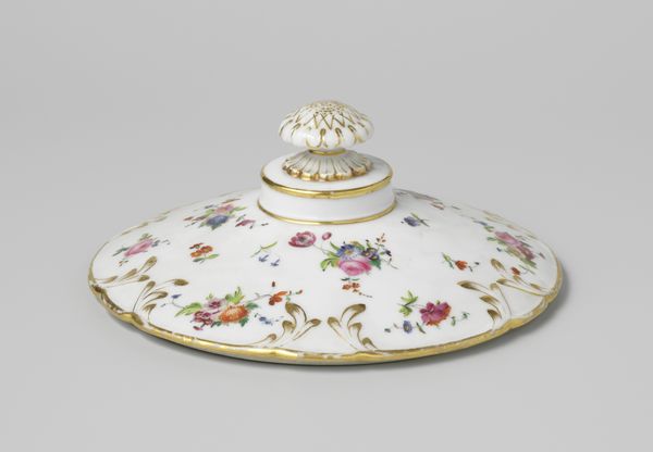 This porcelain dish, adorned with bouquets and flower sprays, comes from the Fabriek Dominique Denuelle. Note how the flowers are scattered across the dish, not arranged in a formal pattern, but seemingly random. Flowers, since antiquity, have been potent symbols. In ancient Greece, they were associated with gods and goddesses, emblems of beauty and ephemeral life. Yet here, on this dish, the flowers serve a different purpose. They speak of domesticity, of private pleasure, and of the burgeoning interest in naturalism during the period this dish was likely made. Consider Botticelli's "Primavera," where flowers burst forth, signifying fertility and renewal. The flowers on this dish, divorced from such grand allegories, become intimate. They are not symbols of the divine but rather tokens of everyday life, small joys rendered permanent on porcelain. This shift reflects a change in human consciousness, a turning inward towards the personal and the domestic. The blossoms on this dish whisper of a world becoming increasingly secular, where beauty resides not in the heavens but in one’s own home.