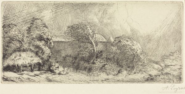 Editor: This etching, "Piping Satyr and Two Fauns, from 'The Triton Group'," by Salvator Rosa, made between 1655 and 1666, feels incredibly unrestrained. The lines are so free and loose, almost chaotic. How do you interpret this work, thinking about the context in which it was made? Curator: This piece plunges us into the world of the satyr, a liminal figure often embodying marginalized desires and anxieties in 17th-century European culture. Rosa, through the etching, may be subtly commenting on the boundaries of acceptable social behavior, and how those in power police such norms. Look at the piping satyr himself: who is he performing for, and on whose terms? Editor: So, the act of playing the pipes could be seen as a commentary on power dynamics? Curator: Precisely. The performance – the art itself – is never neutral. It exists within a framework of who is seen, who is heard, and who benefits. And Rosa, by depicting these mythical beings in what seems a private moment, invites us to question the gaze, our own participation in observing these figures. Consider, too, how 'natural' the setting is: it reflects an ideal, but at what cost does that ideal come? Are we romanticizing a power structure? Editor: I see what you mean. It’s easy to get lost in the apparent freedom and wildness without thinking critically about the social commentary that could be present. It is definitely useful to bring in history and social norms to reveal so much more than just what is visually in front of me. Curator: Exactly! This approach lets us interrogate the art, and the world, with more intentionality and nuance.