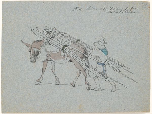 Johan Thomas Lundbye created this watercolor work, "Mule with Chicken Coop," on paper. Lundbye was a Danish painter and graphic artist, known for his animal and landscape paintings. He died very young, at age 29, in the First Schleswig War. At first glance this is a simple watercolor of a mule carrying a coop of chickens, but I can't help thinking about the identity of the mule, this beast of burden, and the chickens contained in a cage. I wonder about the circumstances that lead to carrying live fowl in such a manner? Were they being brought to market? The image leaves me with many questions. The coop seems almost too small for the amount of chickens inside it, and it seems to me that Lundbye captured a moment in which animal lives intersect, under conditions dictated by human need and industry.