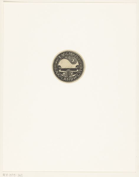 Editor: So, here we have "Ex libris van P.H. Burgers" from 1925 by Richard Nicolaüs Roland Holst. It seems to be a print or drawing. I am struck by the sort of timeless feel of it – like something from an old myth or fable. What do you see in this piece, looking at it through your lens? Curator: I’m immediately drawn to the imagery: the ox, the figure guiding it. They resonate deeply, echoing images of labor and human connection with nature found across cultures. Oxen have historically symbolized patience, strength, and sacrifice. Consider the religious contexts where they bear burdens, or the agrarian societies where their labor literally laid the foundations of civilization. Editor: That makes sense. I hadn't really thought about how loaded such a simple image could be. Curator: Exactly! The human figure controlling the ox also has a potent symbolism, touching upon themes of control, responsibility, and partnership. The image implies not just labor but a symbiotic relationship. But notice too the placement of the title. "Ex libris" meaning "from the books of…” It suggests ownership, yes, but also the weight of knowledge, of inherited stories. Is it a triumphant scene, or one of relentless work? What emotions do you get from these figures? Editor: I can see how the image holds that tension, that ambiguity between triumph and toil, pride and burden. It really adds to the feeling of something ancient being evoked. Curator: Precisely. Holst is tapping into something primal in our collective visual memory, using recognizable images to convey complex and even conflicting feelings. Hopefully this offers some perspective. Editor: This has certainly given me a richer understanding of this piece. It is more than just a drawing; it's a story.
