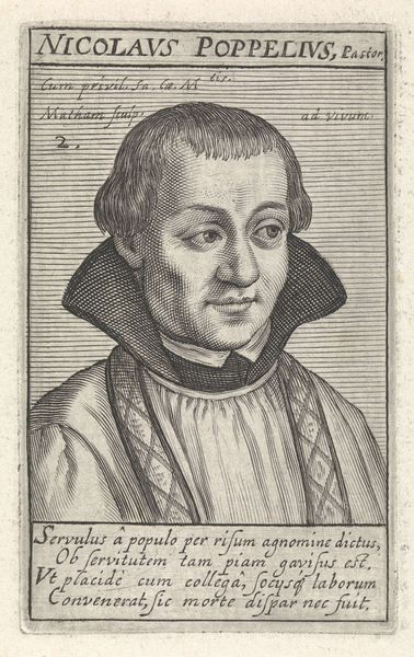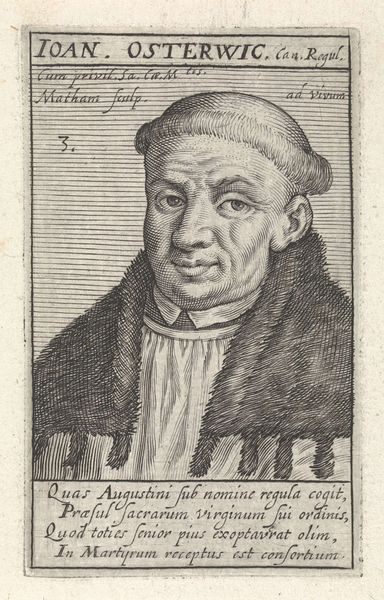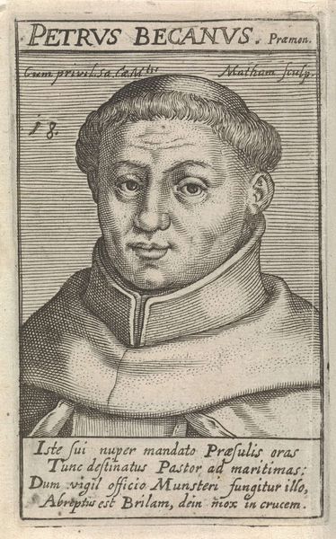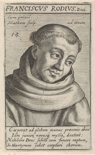 Editor: Here we have "Portrait of H. Antonius van Weert" made between 1617 and 1618 by Jacob Matham. It’s an engraving, so a print, and the detail achieved with that medium is remarkable. The shading seems especially sophisticated for the format. What are your thoughts? Curator: It’s interesting to consider this work through the lens of production. The image is reproduced via engraving which implicates Matham as an artisan, producing multiples for consumption. Prints were a significant form of disseminating information and imagery in the 17th century. The lines you see were achieved through a physical process – the artist directly manipulated material, in this case a metal plate. Editor: Right, so the act of creation is more about skilled labor than divine inspiration? The printing press democratizes art creation? Curator: Exactly! This print exists because of specialized labor, the engraver's skill. The paper it is printed on too! Consider its social context: Who commissioned the print? Who would have bought it? It probably wasn't fine art collectors initially. And what does the inscription say about him, and the implied audience? It speaks of the "divine word" and enduring "monuments of salvation." This brings up important questions about religious images, accessibility, and who decides which images are sacred. Editor: So instead of focusing on the aesthetic qualities of the portrait, we consider the means and social ramifications of its production and consumption. Curator: Precisely. We're looking beyond simply "what is depicted?" towards "how was it made? by whom? for whom? and what impact did it have?". Editor: That really shifts my understanding of its value! Thanks for illuminating that for me! Curator: It shifts art history, too.