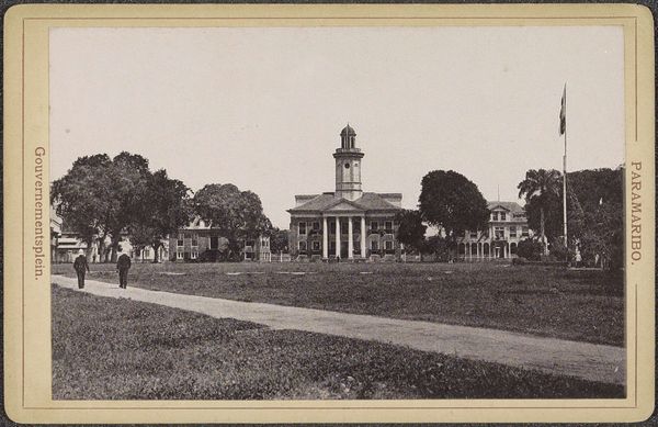 Curator: Ah, look at this striking gelatin-silver print, "Artesische bron in Weltevreden." The photographer remains anonymous, and we estimate it was taken before 1909. Editor: Instantly, I get a serene feeling. It's as if the trees are whispering secrets, you know? There's a softness to the light, almost like a dream. Curator: Indeed. The printmaking process of gelatin-silver allowed for a wide range of tonal variations. Think about the colonial context, the labor involved in cultivating this landscape and then documenting it through the lens of photography and subsequent printing processes. Editor: Right, I get it. Still, even knowing all that, the composition grabs me first. The massive trees in the foreground act like living architecture, framing the scene. What’s that ornate structure in the distance? Curator: Likely a decorative element of the park, a focal point within the curated landscape meant for leisure and display of colonial power. Consider the import of gelatin in printmaking itself – its source materials and development alongside photographic technologies represent another facet of global trade. Editor: Absolutely. There are people, tiny in comparison, strolling—almost ghostlike, further emphasizing the scale. And what does "Artesische bron" mean? It hints at water, a source of life... but contained, controlled, much like the landscape itself. Curator: Precisely. Artesian well refers to a source of water rising under pressure. It would have been a modern marvel back then, signifying technological advancement and the manipulation of natural resources for civic improvement. All this presented in print form and consumed. Editor: It makes you wonder what stories those trees could tell, not just about grand colonial designs, but of everyday life—the interactions, the unseen histories woven into the fabric of the place. Curator: Exactly. By observing these landscape prints, we glean insights into labor systems, material supply chains, and the ideologies that drove artistic and technological development. Editor: So it's a deceptively calm scene, layered with meaning. Well, it really shows you can find wonder in the everyday, even when there's this whole complex story behind it. Curator: Yes, a simple print provides an avenue into understanding global networks and power dynamics embedded within seemingly benign objects and idyllic landscapes.