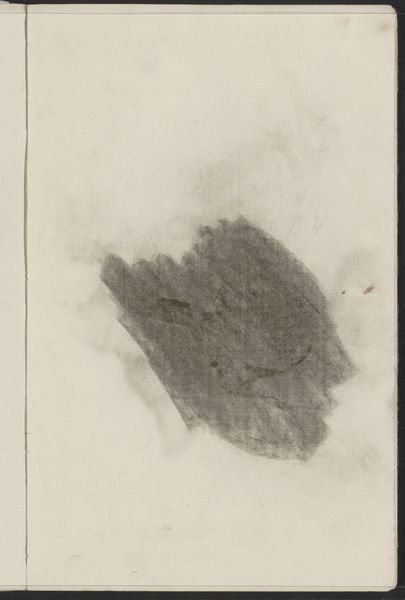 Curator: This ghostly impression is a transfer or ‘Abklatsch’ of a chalk drawing by Willem Witsen, dating from somewhere between 1884 and 1891. It's found within one of his sketchbooks housed here at the Rijksmuseum. Editor: It’s wonderfully spectral. I mean, you look at it and feel this immediate sense of ephemeral things, of fleeting moments only barely captured. It has the air of a dream half-remembered. Curator: Precisely! Witsen often explored these liminal spaces—places where impressions linger and fade. Think of it as a fingerprint of a drawing, taken directly from page 94. You get the sense that it represents Witsen’s process…an idea only partially formed. Editor: What do you think he was trying to represent, even in its partial state? Is there anything symbolic suggested, even through its seeming incompleteness? I can’t quite make out the figures in this pale sketch, but their almost wraithlike quality is arresting. Curator: It’s tempting to dive into speculative symbolism. I believe this comes from a specific sketchbook dedicated to cityscapes, where similar impressions are located. Editor: Even then, a misty urban image...those smoky forms recall memory. Think about how we hold our experience of a place long after we’ve left. Curator: It highlights Witsen’s mastery with simple mediums like chalk and paper. What appears simple is often profoundly affecting. He really understood how to get the most impact with suggestion over pure, crisp definition. Editor: It's funny how such a fragmentary image manages to echo far more substantial realities. What we’re left with is not just an imprint of the original drawing, but a rather poetic statement of absence, echoing across time. Curator: Absolutely, there's beauty even in its impermanence, offering a potent metaphor about memory. Editor: That rings so true, it lingers, leaving its own quiet reverberation.