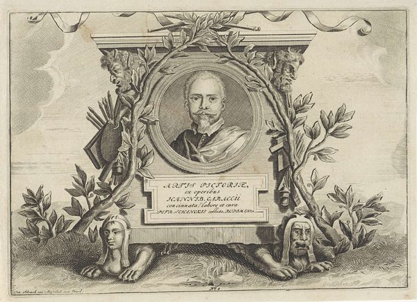 This portrait of the painter Jan van der Straet, or Stradanus, was made in the late 16th or early 17th century by the artist Wierix. Through the elegant use of visual and textual codes, it offers a glimpse into the cultural values of the time. The Latin phrases and allegorical figures surrounding Stradanus's likeness emphasize the importance of virtue, fame, and artistic achievement. Made in the Netherlands, a region then experiencing a period of economic prosperity and artistic innovation, this portrait reflects the humanist ideals of the Renaissance, which placed renewed emphasis on individual accomplishment. The presence of classical figures and Latin inscriptions further alludes to the era’s fascination with ancient history and art. Understanding this work involves exploring the patronage systems of the time, the role of artists in society, and the classical sources that informed its visual language. By delving into these aspects, we can appreciate the rich cultural context that shaped this image.