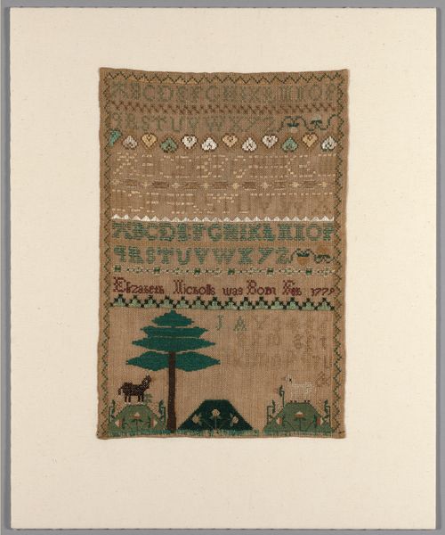Curator: What a fascinating array of textile fragments we have here. Editor: This is "Band," created by the Lambayeque people, possibly between 1000 and 1476. The fragments are fibre art textiles made by weaving. I find the varying textures really intriguing. What aspects of this piece stand out to you most? Curator: Focusing on the internal relationships within the artwork, I find the compositional arrangements to be especially notable. Each fragment, though incomplete, displays a distinct visual rhythm. The variation in color, primarily earth tones punctuated by brighter accents, establishes a structured visual hierarchy. Editor: That makes sense. The limited colour palettes, I can see how that lends each fragment a unique, internal coherence, a system all its own. But are there any common visual threads? Curator: Certainly. The geometric abstraction in the depictions of plants, animals, and anthropomorphic figures serve as recurring motifs. Examine how the repetition of these elements, arranged in vertical registers, suggests a structured narrative, irrespective of the actual subject of depiction. This is strengthened by use of negative space to articulate shapes, a powerful element. Editor: So you’re saying the impact comes more from how the elements are arranged and how the artist played with colours? Curator: Precisely. Observe, too, the materiality: The woven fibers themselves create texture and pattern, independent of the applied imagery. These textile remnants become abstract compositions and create relationships based purely on structure and technique. Editor: That is really interesting! Looking at them as arrangements, that reframes my idea about their incomplete look and highlights intentional decisions on colours, shape, pattern. Curator: Yes. We might see a study in visual grammar, using an Indigenous American language. What new things can we learn through observation?