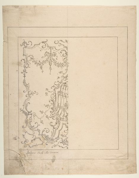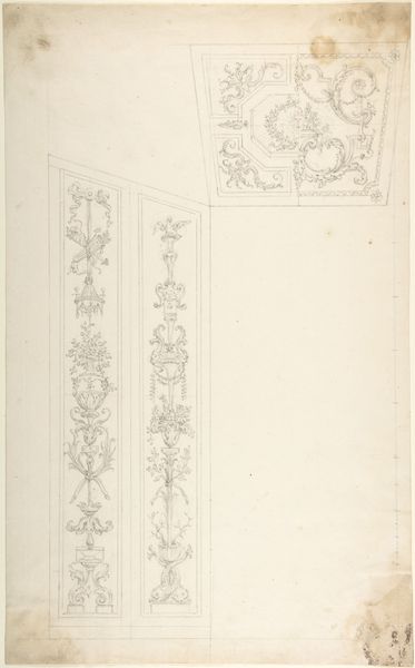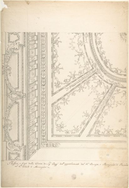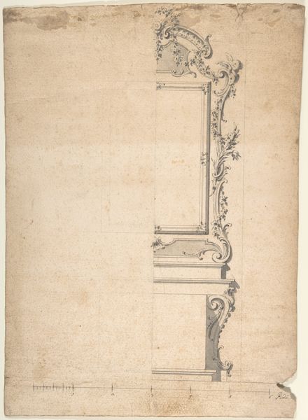 This wall design was created by Leonardo Marini, sometime in the late 18th century, with graphite on paper. The drawing gives us an insight into the making of interior architecture of the time. Consider the amount of labor that would go into producing a wall like this, with its complex joinery, molding, and painted decoration. This was work executed by teams of highly skilled carpenters, carvers, and painters. The design reflects a society that prized handcraftsmanship, and where ornament was valued. It is easy to see the inherent qualities of the materials; the graphite is soft, precise and capable of capturing fine details. It gives us a sense of the final design and helps us imagine the texture, weight, and form of the wooden wall. The design is more than just aesthetic; it speaks to social issues, the politics of display, and the consumption of luxury goods. Looking at this drawing, we can appreciate how materials, making, and context are essential in understanding an artwork's full meaning. It challenges the traditional distinctions between fine art and craft.
