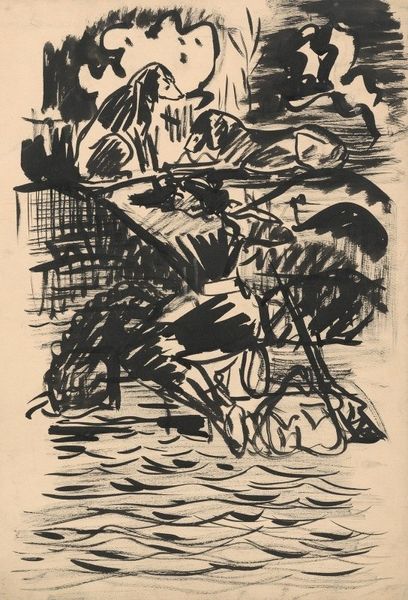 Curator: This is Arnold Peter Weisz-Kubínčan's "Lamentation of Christ," created in 1940. It's an ink drawing using both pen and ink wash techniques. Editor: It's stark. The rapid strokes of ink convey immediate suffering and despair, the figures emerging and receding from the light like phantoms. Curator: The artist's technique really emphasizes the drama, doesn't it? Look at how the varying line weights articulate form and emotion. The heavy, dark lines create weight and shadow, contrasting with the lighter, sketchier areas that suggest a spiritual realm. The composition centers on the angular, grief-stricken figure of Christ, surrounded by mourners. Editor: Yes, the figures, constructed through layering, give a real insight into how social experiences leave marks, not just on the physical body, but on collective consciousness too. You know, what's most arresting is how immediate this piece feels despite the solemnity of the subject matter. It prompts consideration of the very nature of art production in such difficult historical moments. Curator: The hatching and cross-hatching build up the figures from basic geometric components. Notice the expressions, suggested with such economy of line. It's almost diagrammatic in its abstraction, which only amplifies the emotionality through stark representational choices. Editor: What about the role of the work, you know, beyond the formal execution. It asks, or makes us ask, important questions about spiritual grief in 1940, no doubt impacted by political events of the time. The application of ink lends itself to the mood, doesn’t it, lending a fragile quality appropriate to loss and fragility. Curator: Absolutely. Considering Weisz-Kubínčan’s context in the 1940s, it's fascinating how such emotional weight can be born from relatively few materials. The power lies not just in the representation, but in the suggestion, the economy of means, and their perfect execution for the work’s setting. Editor: Agreed. "Lamentation of Christ," while depicting a well-known religious scene, presents an important insight into how the materials and methods behind an artwork provide meaning when linked to the hands that labored over them, as well as their social world. Curator: An elegant testament to the visual language that arises out of somber experiences, presented here by its material construction and manipulation. Editor: Precisely; thank you. A remarkable image speaking eloquently through line, materiality, and production to create new and thought-provoking context.