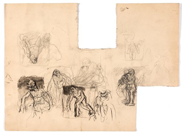 Oluf Hartmann created these studies for "Ixion" with ink on paper, sometime before his death in 1910. The sketches depict the mythological figure of Ixion, punished by Zeus to an eternity bound to a flaming, ever-spinning wheel. Hartmann was a Danish artist working in a period where mythological and historical subjects were often used to explore contemporary social and political themes. The story of Ixion, eternally punished for his transgressions, could be seen as a commentary on social justice, or perhaps the rigid class structures of the time. The raw, unfinished quality of these sketches only intensifies the feeling of struggle and despair. In searching the archives, we can contextualize the artist’s life and training within the Royal Danish Academy of Fine Arts and see the influences of academic tradition. Further study might reveal clues about how audiences in the early 20th century might have viewed this image of unending torment.
