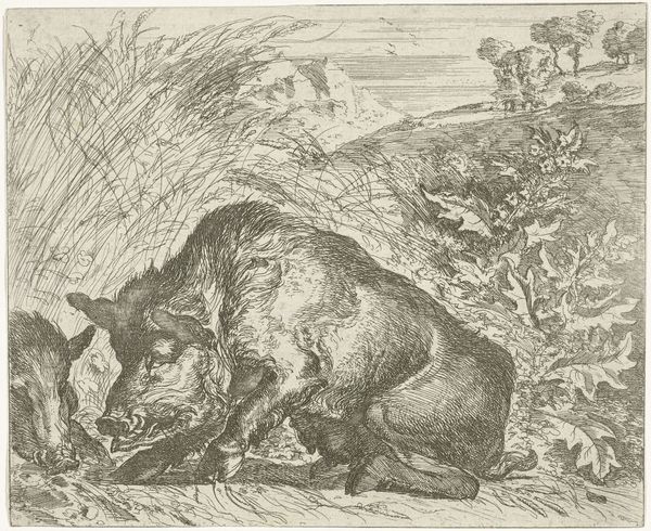 Charles Jacque made this etching, Swineherd, sometime in the 19th century. The magic of etching resides in the alchemical combination of materials: metal, acid, and ink. The artist would have first coated a metal plate with a waxy, acid-resistant ground. Using a needle, he scratched an image into this ground, exposing the metal underneath. The plate was then submerged in acid, which bit into the exposed lines, incising the image. After removing the ground, the plate was inked, and the surface wiped clean, leaving ink only in the etched lines. Finally, the plate was pressed against paper, transferring the image. Consider the deep, rich blacks and the delicate, flickering lines. These are direct results of the etching process, and give the image a tactile, almost sculptural quality. This print represents a moment in the daily life of a rural laborer. It reminds us that even seemingly simple images are born from a complex interplay of material, process, and social context.