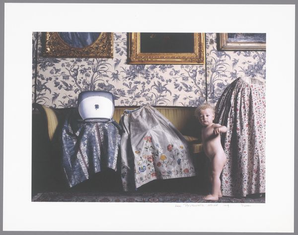 Robert Rauschenberg made this photographic work titled "Chinese Summerhall." Rauschenberg, as a white American artist, was deeply engaged with ideas of cultural exchange. This image captures a moment in a Chinese hotel room and invites us to consider themes of cultural identity and experience. The items such as the lamp and the orange rotary phone are both dated and reminiscent of what was once considered stylish. By drawing our attention to these details, Rauschenberg encourages us to contemplate our own relationship to memory, place, and cultural context. Rauschenberg was interested in blurring the lines between art and life. This comes across through his choice to frame the transient atmosphere of a hotel space. How does the staging of this room—with its bed on either side of the bedside table—emphasize the loneliness of the traveler? What does the presence of this telephone suggest about our global connections, and our capacity to be both present and absent at once?