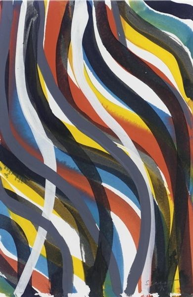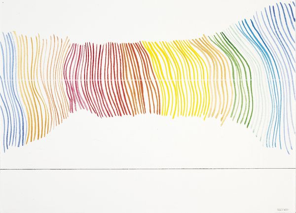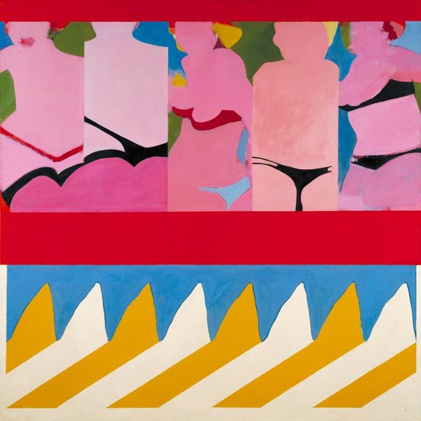 Curator: This is Dieter Asmus's 1971 painting, "Zebra II," executed in acrylic on canvas. What are your initial thoughts? Editor: Striking! The composition is so stark. That intense blue—a perfect, almost unnatural backdrop. And the red brick structure with the single zebra. It evokes a feeling of isolation. Curator: Isolation is a key element. Asmus was engaging with themes of alienation and the individual's place within a constructed reality. The zebra, a symbol of the exotic and untamed, is placed in a highly artificial environment. What does that juxtaposition tell us about control and freedom? Editor: Formally, it’s all about contrast. The smooth, unmodulated blue versus the textured brick, the organic curves of the zebra against the geometric platform it occupies. The artist focuses on pure visual elements, foregoing naturalistic color for stark, modern flatness. It pushes the piece into abstraction. Curator: I read it more as a commentary on zoos and wildlife parks—the commodification of nature for human consumption and entertainment. The zebra, fenced off and perhaps representing colonized bodies, becomes an object on display in this structure that simultaneously protects and confines it. What might that fence around the platform signify? Editor: Possibly. But consider the pure simplicity. The fence as a structural component draws the eye across the red plane. The repetition in the brick pattern itself becomes an abstract design element. The painting compels one to deconstruct not merely our surroundings, but how they function and the signs involved. Curator: True. The repetitive, artificial brickwork is critical in thinking about post-war industrialization. And given Asmus's involvement in the Hamburg art scene of the late '60s and early '70s, his paintings serve as stark critiques of consumer culture, social alienation, and even German reunification. Editor: Agreed. "Zebra II" holds up formally. And it’s rewarding to see that embedded inside the forms is the capacity to question systems, society and politics in the 70s. Curator: Indeed. Asmus presents the animal alone. But by forcing the viewer to question its containment, the painting encourages introspection of one's position as either watcher or watched.