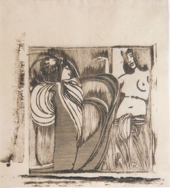 This portrait of Frau Nelly Fehr is an expressive woodcut by Ernst Ludwig Kirchner, printed in black ink on a stark yellow background. It's a striking image, and the way the ink sits on the paper makes you feel like you’re right there in the artist's studio. Look at how Kirchner uses those bold, almost violent lines to define Nelly's features. The texture is rough, raw, each stroke a testament to the physical act of carving into the woodblock. The way the black ink is laid down so heavily in some areas, and barely there in others, gives the image a real sense of depth and energy. And that splash of yellow behind it all! It’s like a spotlight, but also somehow unsettling. The raw intensity reminds me of Munch, especially in the way both artists use their materials to convey psychological states. It's this kind of raw, unapologetic emotion that keeps me coming back to Kirchner's work.