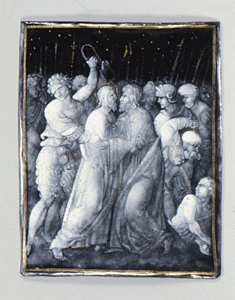 Editor: This is “Valance with The Story of Moses,” made between 1595 and 1605. It's attributed to Bernard Salomon and seems to be a print designed for a textile. It feels very narrative, almost like a comic strip telling a story. How do you interpret this work, seeing as it's meant to adorn a valance? Curator: I see it as a powerful compression of cultural memory. Notice how the scenes from the life of Moses aren’t neatly separated. Instead, they blend, one into another. This reflects how stories were often understood in the Renaissance, not as isolated events, but as part of a continuous thread of meaning. What stands out to you about that visual overlap? Editor: It feels very dreamlike, the way events bleed into one another, and there are some very graphic scenes portrayed. Is there any significance to this continuous portrayal that isn’t just about visual storytelling? Curator: The seamlessness emphasizes the ongoing relevance of the story. Moses wasn't just a figure of the past. His story, his laws, his struggles – they were all very present for the Renaissance viewer. A valance hangs in a domestic space, right? What impact would having these visual reminders there everyday have? Editor: It would definitely make it hard to forget. Seeing these stories depicted so vividly around the home, it's as if they become a part of your daily consciousness, almost like a family history you keep revisiting. Curator: Precisely! This valance doesn’t just decorate; it instructs, it reminds, it integrates biblical history into the everyday experience, and in effect ensures the survival of cultural values and symbols over generations. Editor: I never considered the visual impact of repeated symbols quite like that. It makes me appreciate how much these images can actively shape our understanding.