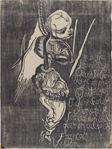 Editor: Lovis Corinth's "Letter E: Angel" at the Harvard Art Museums is a striking work. It looks like a monochromatic sketch, and the figure seems to be emerging from the letter itself. What can you tell me about the composition? Curator: The strength of this work lies in the tension between form and content. Note the stark contrast between the bold, almost crude, lines defining the "E," and the more delicate rendering of the angel figure within. Editor: I see what you mean about the tension. Curator: Consider the formal properties: line, shape, and texture. How do these elements interact to create a sense of dynamism? Editor: It's like the angel is breaking free from the constraints of the letterform. Curator: Precisely. The artist manipulates these formal qualities to suggest movement and liberation. Editor: That's a fresh way of looking at it. Thanks! Curator: Indeed, a compelling study in the language of form.
