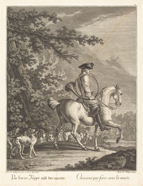 Meno Haas produced this print of Friedrich the Great, King of Prussia, sometime between 1752 and 1833. In it, Friedrich is presented as a military leader and a man of the people. Set against a backdrop of lush foliage and classical architecture, the king’s image draws heavily on established visual codes of power. Prints like this one were common in 18th and 19th century Europe, where the proliferation of printmaking allowed for images to be widely distributed and consumed. The print served both a documentary purpose and a social function. Institutions like the Prussian monarchy understood the power of imagery to legitimize political power. Prints played a crucial role in shaping public opinion and fostering a sense of national identity. Understanding this print involves delving into the social and institutional context of Prussia during Friedrich's reign. Research into the political climate, the prevailing artistic tastes, and the systems of patronage can all shed light on the print’s creation and reception.