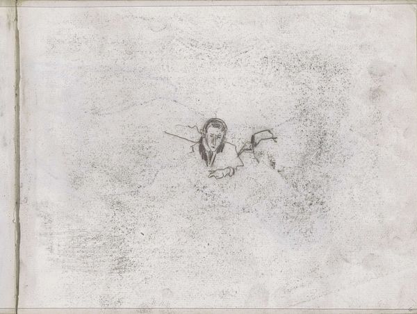 Curator: Oh, this is quite faint, isn't it? Johan Hendrik Weissenbruch's "Abklatsch van de tekening op pagina 7 recto," dating roughly from 1834 to 1903. It's a pencil drawing on paper. What's your immediate take? Editor: Hmm, wistful. Melancholy, even. Like a memory fading, sketched by someone on a rainy afternoon when they were thinking about childhood and mortality. Curator: That's beautiful! I feel the impermanence. It’s interesting how the "abklatsch"—a transfer or rubbing—technique reinforces that. It wasn't meant to be a finished piece. More like a fleeting study, captured in his sketchbook, likely. You know, sketchbooks can be intensely personal documents, really raw. Editor: Absolutely. I think about how the looseness allows us to project our own narratives onto it. Two figures – perhaps gendered as one boy standing, another seated – engaged in leisure or work, almost erased by time and what might read today as class inequality given labor dynamics, their blurred lines echoing so much unspoken tension... who are they, truly, and what system are they part of? Curator: Yes! And the incompleteness – it's all suggestion. I feel as if I’m overhearing a half-remembered story. I see them interacting on what looks like a bank beside the water. Perhaps children who helped families secure income through fishing? Editor: Perhaps that initial casual glimpse we take and turn sentimental transforms into seeing a world mired in very specific roles assigned and impacting life-long agency and experience. Consider this against the backdrop of the Industrial Revolution… these aren't carefree sketches; these are people affected. Curator: The scale and delicate execution amplify that sense of vulnerability. Editor: Exactly. Curator: Well, it seems even a seemingly simple sketch like this contains worlds within it. Thank you. Editor: Thanks, likewise. Thinking through those intersections enriches how we receive and relay such intimate images.