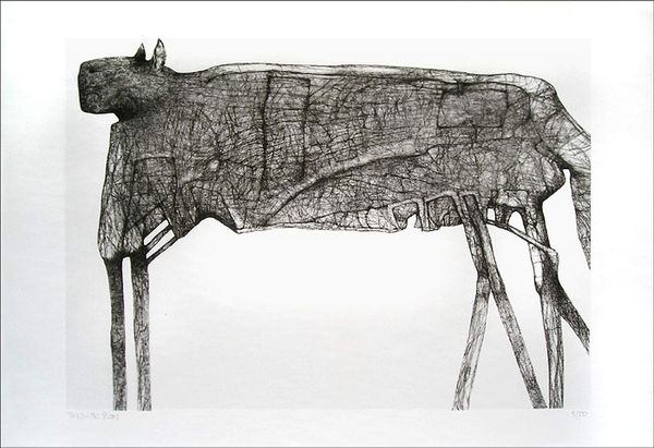 This is Alexander Calder’s wire sculpture 'Mule', made with wire and a wooden base. It’s all about line, isn’t it? Like drawing in space. What I love about this piece is how Calder captures the essence of the animal with so little. It’s like a cartoon, but so full of character. I’m looking at that bend in the back, that single wire that somehow suggests the weight and weariness of a working animal. You can almost see it breathing, right? There’s something so playful and light about it, despite the subject matter. The texture of the wire, the way it catches the light, it’s almost like he’s sketching in the air. You know who else did that, in a way? Giacometti. But where Giacometti is all angst, Calder is pure joy. It’s like he’s saying, ‘Look, art doesn’t have to be serious, it can be fun.’