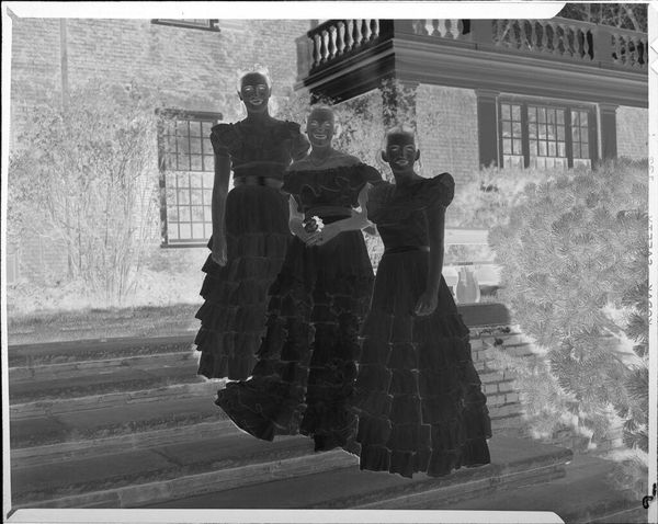 Editor: Here we have an untitled photograph by John Howell, showing a group of young women, perhaps debutantes. It has a ghostly, almost dreamlike quality due to its inverted tones. What's your take on this image? Curator: It whispers of a bygone era, doesn't it? The reversed tones create an unsettling beauty, transforming the familiar into something surreal, like a memory fading or a secret revealed. Perhaps Howell invites us to look beyond the surface, to see the fleeting nature of youth and social rituals. Editor: I hadn't thought about that! So it's less about the event itself and more about... Curator: ...the ephemeral quality of experience, the undercurrents beneath the polished facade. It's a dance between light and shadow, innocence and awareness. What do you think these debutantes would make of this representation? Editor: I guess it's a pretty interesting way to think about things, thank you!