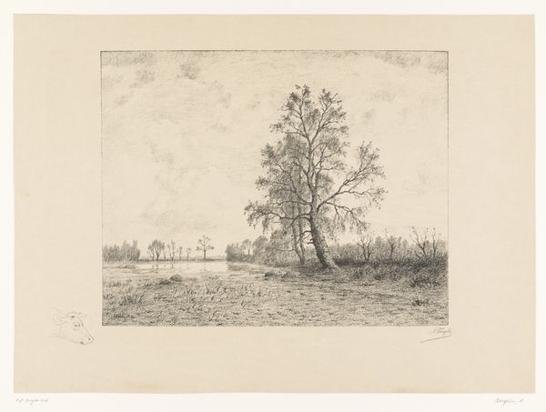 Adrien Le Mayeur de Merprés made this landscape with knot willows and a boat on the water with pen in the Netherlands. This drawing offers an interesting glimpse into the Dutch countryside and its representation in art. Made during a period of significant social and economic change in the Netherlands, it invites us to consider the cultural values that shaped the artistic production of the time. The Netherlands, with its unique geography of waterways, has always had a close relationship with its landscape. The image of the boat may reflect the importance of water for transportation and trade in Dutch society. By studying the art of this period alongside other historical sources, we can gain a better understanding of the complex relationship between art and society in the Netherlands. The social conditions prevalent at the time of its creation will provide an insight into the purpose of its design.