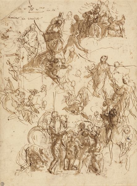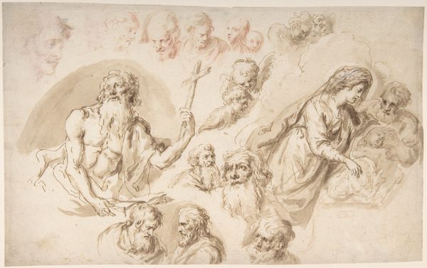 Pietro Testa made this drawing, a study for 'The Dream of Saint Joseph', with pen and brown ink over traces of graphite. The drawing’s lines range from light and delicate, to bold and forceful, creating a dynamic tension across the composition. Look closely, and you can see how he built up the image through layering, with initial sketches providing a foundation for the more defined figures. The artist’s hand is ever-present in the varying pressure and speed of the pen strokes. Testa employed the traditional tools of pen, ink, and paper, to realize his vision of the subject. Note how the consistent use of line ties all the elements together, from the heavenly cherubs to the earthly figures. While drawings like this are often considered preliminary steps toward a final painting, the material qualities of ink on paper, combined with Testa’s skill, give this work its own compelling presence. It reminds us that so-called ‘craft’ media can be just as expressive as any other.