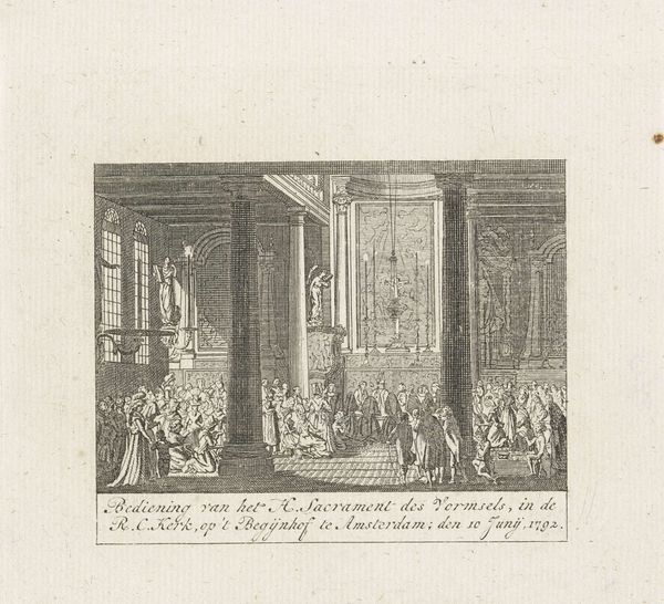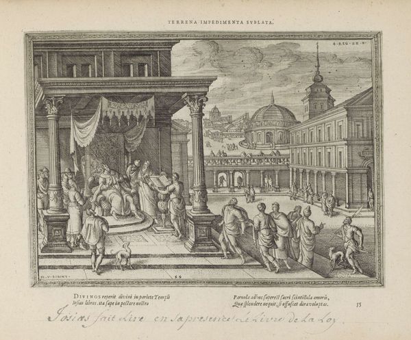 Editor: This engraving, "Christ before Annas and the Denial of Peter," made by Pieter van der Borcht sometime between 1582 and 1613, is quite intricate. I'm struck by the level of detail achieved with just lines and the depiction of what looks like both an interior and an exterior scene in the same frame. How do you read this piece, especially considering its medium and time? Curator: Looking at this engraving, it's important to consider the social and economic context of printmaking during the Renaissance. Engravings like this weren't just art objects, they were reproducible commodities. Van der Borcht, through his labor and the printmaking process, is essentially mass-producing a biblical scene for wider consumption. It democratizes access, in a way. Notice the lines; they create not just form but texture, almost mimicking fabric. What kind of statement does that tell you, in terms of its time? Editor: So you're saying the medium itself is a crucial part of understanding its meaning? The fabric detail makes me think, perhaps the work elevates what could be deemed common into a luxurious display of labor through form? How might the commercial aspect have affected artistic choices? Curator: Precisely. The choice to depict texture meticulously would be partly driven by consumer demand, perhaps a selling point to stand out. Furthermore, think about the cost of materials: the copperplate, the ink, the paper. How readily accessible were these? Production dictated the reception. Did people even view it as art, or as religious iconography readily for sale? Editor: It's interesting to consider this artwork not just for its artistic merit, but for the processes, economic exchanges, and available tools involved. Thanks, this gives me a much better material understanding. Curator: Indeed. By exploring the conditions of production, we uncover a richer understanding of its cultural significance and historical moment. It highlights the art itself in relation to labor practices.