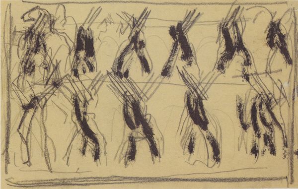 Curator: Here we have "Studieblad met konijnen," or "Study Sheet with Rabbits," attributed to Julie de Graag. It's rendered in ink on paper, sometime between 1887 and 1924, and now resides in the Rijksmuseum. Editor: Oh, it's utterly charming! A flurry of bunnies, all simple lines and quiet observation. Like a peek into the artist's sketchbook, when she was just, you know, doodling. Makes me want to grab a pencil and join in. Curator: Indeed. De Graag’s technique is deceptively straightforward. Note the economical use of line to define form—almost a calligraphic approach. Each rabbit is reduced to its essential gestural quality. It elegantly displays her focus on basic structure. Editor: They’re so plump! And each pose suggests a different little personality, even with the sparseness of detail. Look, there's one that's practically a fuzzy potato, and another looking remarkably alert! It's less about pure realism and more about... capturing their essence, I think. Curator: Precisely. Though tagged with "realism", we understand this as a study of form, rather than strict mimetic representation. The placement of these studies, scattered across the page, introduces the idea of the page as a field; the white acting as negative space that articulates each figure. Editor: It also reminds me of a child’s drawing, actually, raw and intuitive—before all the art school baggage creeps in. It has that sort of unaffected purity. I feel like she really just liked watching bunnies, you know? There’s love here. Curator: Perhaps a bit too sentimental. I agree the work is undeniably playful. The use of simple linework gives the impression of speed and movement. As such, the work transcends realism and occupies a semiotic domain where each rabbit is merely an idea of itself. Editor: And maybe that's the real magic. We look, and suddenly they come alive in our minds, hopping around! Curator: A fine sentiment. In sum, this simple drawing provides a glimpse into how elemental artistic structure informs creative practices. Editor: Absolutely, and the pure joy of observing something sweet and furry! A great starting point to consider animal portraiture and a lighthearted view of form.