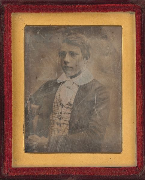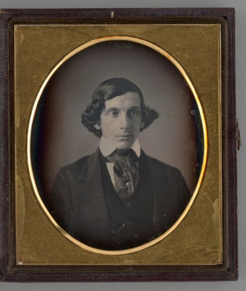 This photograph, an exquisite daguerreotype of a young man, is encased in an ornamental frame. Its floral motifs remind us of the Renaissance obsession with classical antiquity. Note how the floral patterns, reminiscent of ancient laurel wreaths, frame the sitter's face. Laurel, in antiquity, symbolized triumph and immortality, often adorning emperors and heroes. Here, this symbol has metamorphosed, now gracing a portrait of an anonymous individual. This shift reflects a broader democratization of symbols. What was once reserved for gods and rulers now embellishes a common man's likeness. This transformation speaks to a deep-seated human desire: the wish to immortalize oneself, to leave a lasting mark. Just as ancient Romans sought immortality through marble busts, this young man, in his own era, turned to the burgeoning technology of photography to defy oblivion. It is as if the collective unconscious remembers the potent symbolism, imbuing the floral frame with a lingering echo of past glories. It is this cyclical return of symbols, reimagined across time, that reveals the enduring power of images to stir our souls.
