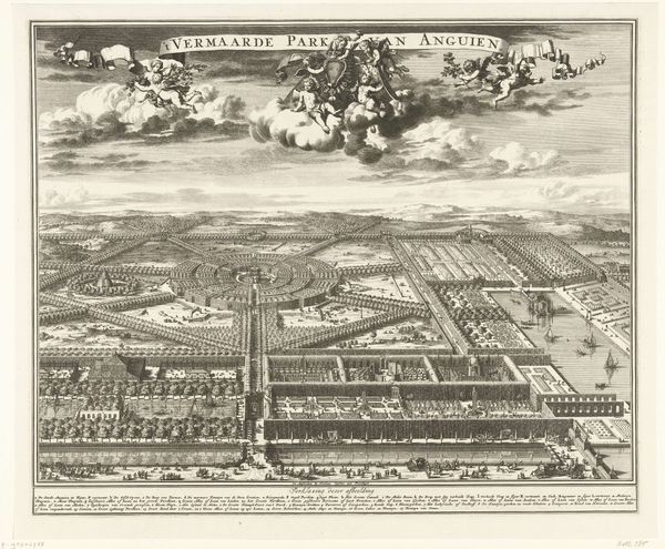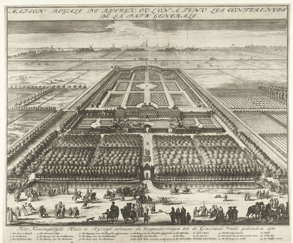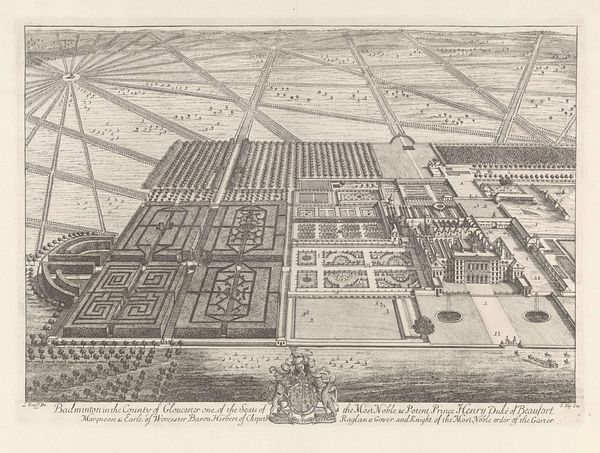 This is an engraving by Johannes Kip, depicting Badminton House, an English country estate. The printmaking process Kip used here involved considerable labor. First, he would have created a detailed drawing, then painstakingly incised it into a copper plate. This process, called etching, requires a steady hand and deep knowledge of perspective to convey a sense of depth. Look closely, and you’ll see the meticulous detail Kip achieved. The gardens, fields, and avenues of trees all recede into the distance, portraying the wealth and power of the estate’s owner, the Duke of Beaufort. It's important to remember that prints like these were not just artistic expressions. They were also tools of social display, communicating status and control over land and labor. They reflect a time when land ownership defined social hierarchy, and where every element of the landscape was cultivated to reflect the owner’s vision. This piece invites us to think about how art is not just about aesthetics, but also about the social and economic forces that shape its creation.