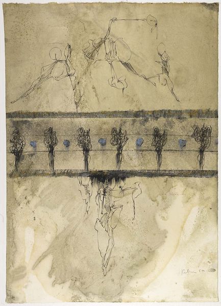 Salvador Dalí made this work, Personnages dans le désert, with a light touch and an airy palette. The colours are soft, like a watercolour dream, and the marks seem to float across the surface, suggesting the delicate process of bringing a dream into the physical world. The paint is thin, almost transparent, which gives the whole piece a hazy, ethereal feel. It’s like looking through a veil. Notice the figures, or rather, the suggestion of figures, barely there but undeniably present, as if they were mirages in this desert landscape. The way Dalí uses line, so quick and decisive, it's like he’s sketching directly from his mind. Look at the birds, for example, just a few strokes, but they capture the essence of flight. This piece reminds me of Giorgio de Chirico, another artist who created strange, dreamlike spaces. But where de Chirico feels heavy and monumental, Dalí is light and fleeting, embracing the fluidity of thought and perception. Art is just one conversation bouncing off another.