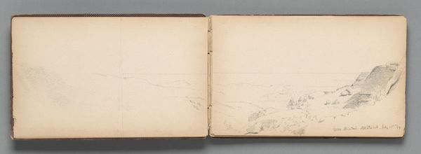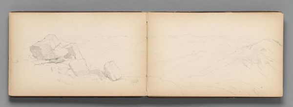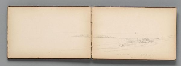 Editor: This is "Partial Landscape, Mount Desert Island," a pencil drawing by Sanford Robinson Gifford. It’s quite small, about 5x9 inches. The sketchiness makes me wonder about its purpose. What do you see in this piece regarding its materiality? Curator: The use of graphite on paper is so interesting here; a readily available and affordable medium, yet capable of capturing a specific moment in time and place. Consider the mass production of paper and pencils during the mid-19th century, making art accessible. This challenges the traditional notion of landscape painting as an exclusive, high art form. Editor: So, the ordinary materials democratize the art-making process? Curator: Precisely! The medium itself hints at a shift in artistic production, inviting a closer look at the labor and resources involved in creating even a seemingly simple sketch. Editor: Fascinating! I never thought about it that way before.