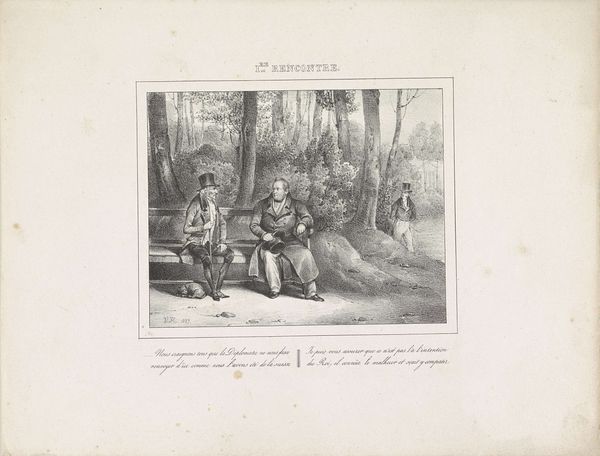 Marie Electrine Stuntz created this print, "So you, German, Triumph!" using etching, a process known for its fine lines and detailed textures. Note the striking contrast between the delicate figures in the foreground and the chaotic battle scene receding into the distance. The composition is carefully structured, staging a moment of somber reflection amidst the theater of war. Three soldiers are attending to a wounded nude figure who is in the centre of the work. The arrangement of figures creates a poignant tableau, framed by the natural elements of the tree on the right and the distant conflict on the left. Consider how Stuntz uses line and form to destabilize conventional heroic narratives. Instead of glorifying victory, she focuses on the human cost, challenging viewers to confront the complex realities of conflict. This work functions not just as a historical record but also as a meditation on German national identity after the Napoleonic Wars.