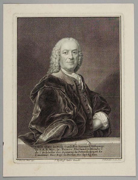 Curator: Looking at this print of The Reverend William Hooper, notice the formality of his attire. The wig, the clerical collar—symbols of authority and piety in 18th-century Boston. Editor: Yes, and that seriousness almost borders on severity. I wonder how much that image was carefully cultivated as a symbol of power and control, especially considering the socio-political climate of the time. Curator: Well, Pelham was known for his ability to capture likenesses while also conveying a sense of dignity. Notice, for instance, the way Hooper's gaze engages the viewer directly, creating a sense of presence and importance. Editor: An importance that, in many ways, defined who was seen and heard within the colonial landscape. It definitely makes me think about the communities excluded from that portrait of power. Curator: Certainly, that’s a worthwhile perspective to consider. The symbols in this piece definitely open discussions on colonial hierarchy. Editor: Indeed, visual authority and how that continues to resonate today.