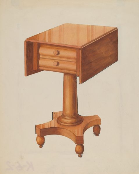 Ernest A. Towers, Jr. created this watercolour painting depicting a Dining Room Table. The central motif is the table itself, an object laden with cultural significance. Throughout history, the table has served as a site for communal meals, family gatherings, and important negotiations. In ancient Roman society, the dining table, or "triclinium," was a symbol of status and hospitality. This table design is a modest echo of those historic tables, and the central placement of this particular table in the composition elevates its importance, suggesting that it is a symbol of comfort and domestic stability. The table also bears a striking resemblance to an altar, and the communion of eating and drinking. We can see how the memory of these shared meals creates a powerful psychological bond, reinforcing collective identity and shared values. The design of this table is thus not a linear, but rather a cyclical progression, where memory, tradition, and emotion coalesce.
