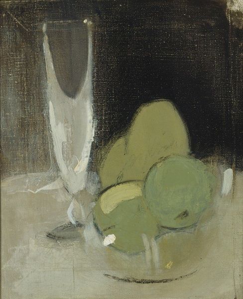 Curator: Let’s discuss Arnold Peter Weisz-Kubínčan’s "Motif from Circus", completed in 1935 using oil paint. Editor: What strikes me first is the muted color palette, even somber. It feels… lonely, despite the subject matter, doesn't it? Curator: Indeed. It’s vital to consider the socio-political environment of 1930s Europe, the rise of fascism, the pervasive anxiety and despair. The circus, often a symbol of joy and spectacle, here seems tinged with melancholy. This composition with the fallen clown and disinterested subjects invites questions about performativity and authenticity during times of political turmoil. What roles did artists and entertainers play in societies hurtling toward crisis? Editor: I see your point, but I'm drawn to how the artist uses the impasto technique. Look at those thick, visible brushstrokes creating texture and volume. Notice also the formal use of the central pale vertical form. It splits the pictorial space almost as a horizon line might in another canvas, a stable vertical, against the more dynamically rendered horizontal planes, which create this strange flattening of space in the ring. Curator: True, the paint application is rather raw. But what is signified by the black monkey riding the horse, with the clown face down in the ring? How might this critique hierarchical power structures through a distorted, nightmarish reflection of the circus's roles? Editor: Hmm... perhaps. I was observing how the shapes, despite the muted colors, do work effectively. The acute diagonals formed by the clown are juxtaposed against the rounder shapes above, a pleasingly constructed formal strategy. But maybe that serves your perspective on power in performance, the diagonal pointing to prostration, perhaps? Curator: Precisely. It speaks to a certain breakdown—both aesthetic and societal—in that pre-war moment. Editor: Regardless of intent, there is an uneasy equilibrium constructed through colour and form. Curator: Ultimately, viewing "Motif from Circus" provides a fascinating glimpse into how historical anxiety shapes artistic vision. Editor: For me, this is an absorbing example of how compositional techniques can communicate mood, adding to this very poignant portrayal.